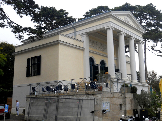 Bei diesem Gebäude handelt es sich um ein ehemaliges Jagdschloss des Fürsten Esterházy. Das Gebäude entstand nach den Plänen des franz. Architekten und Malers Jean Charles Alexandre de Moreau (1758-1840) und wurde im Jahr 1805 fertiggestellt. Der tempelartige Bau im Park des Schlosses Esterházy erhielt offiziell die Bezeichnung Marientempel - zu Ehren der Fürstin Maria Josepha Hermengilde Esterházy de Galantha (1768-1845).